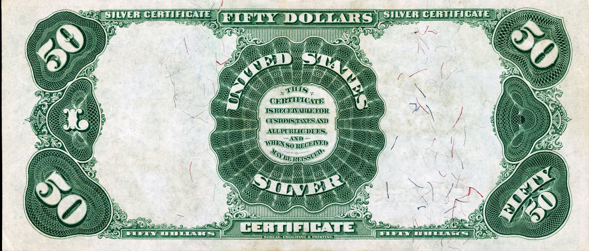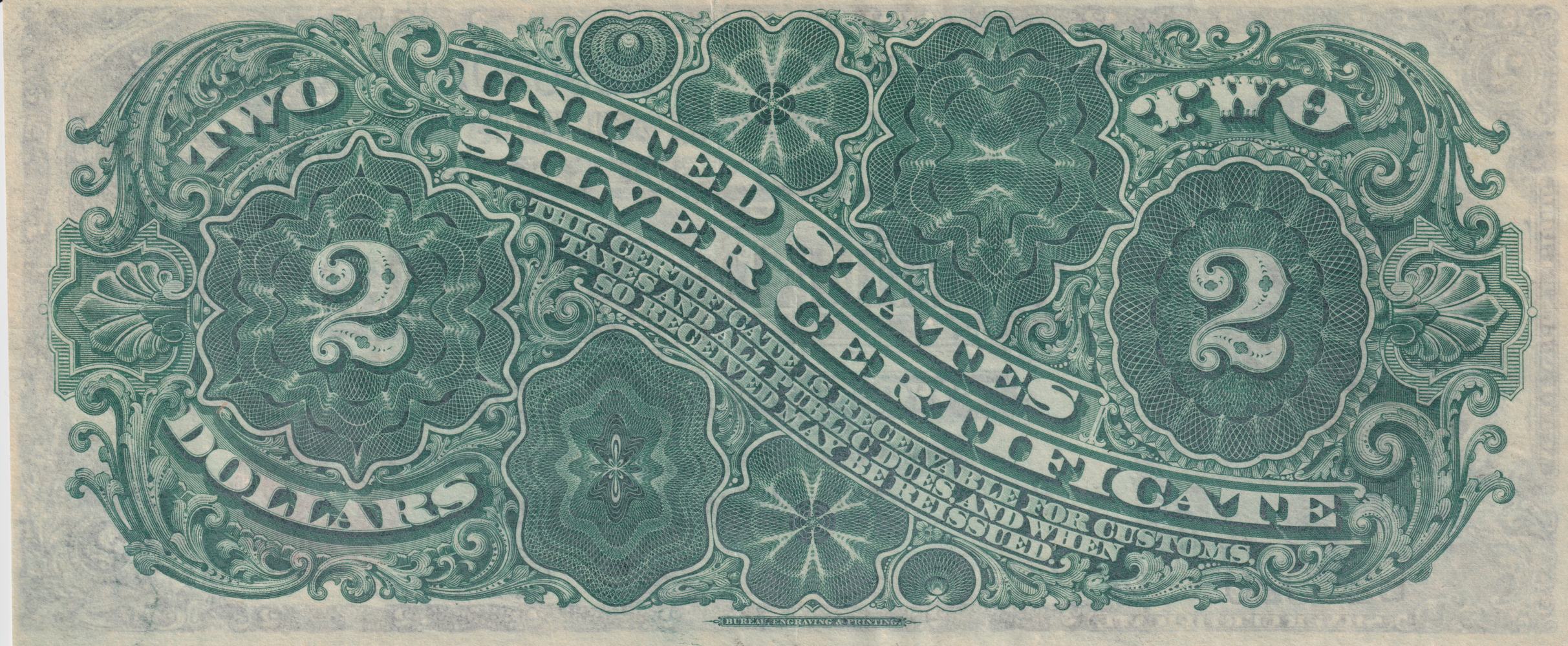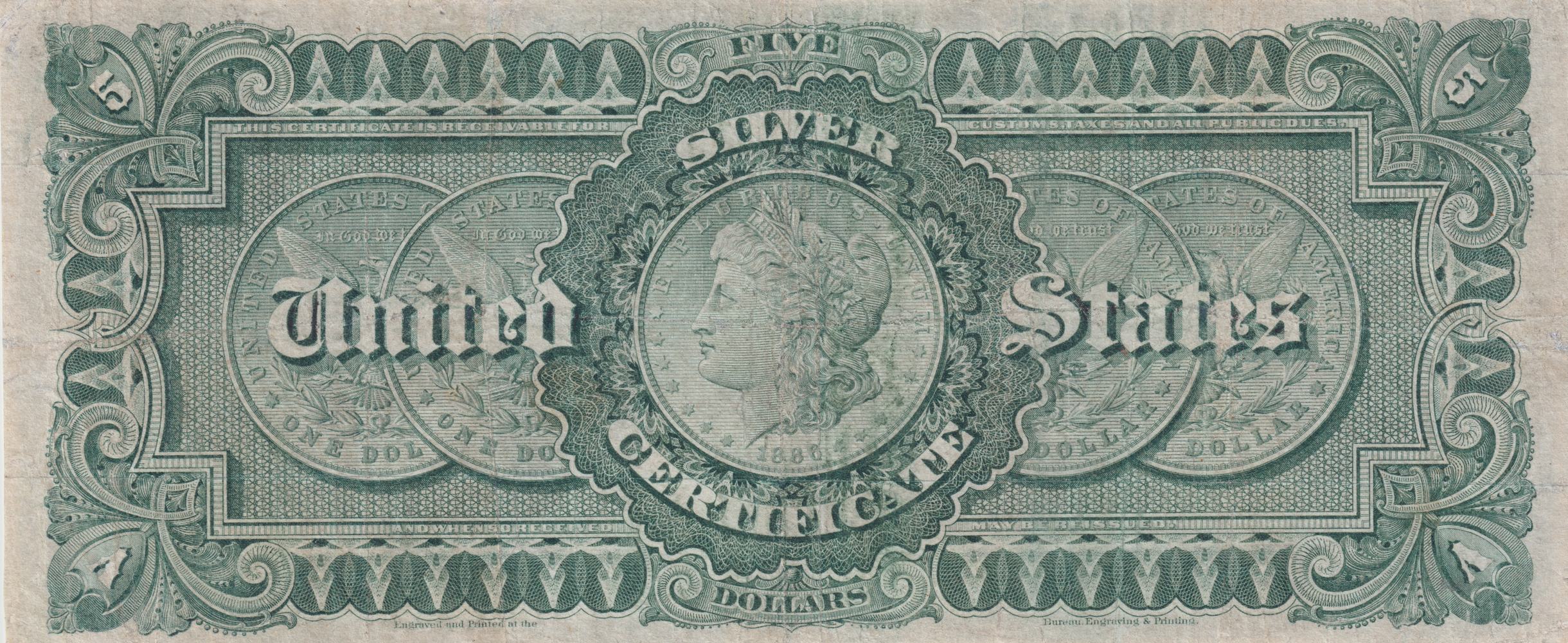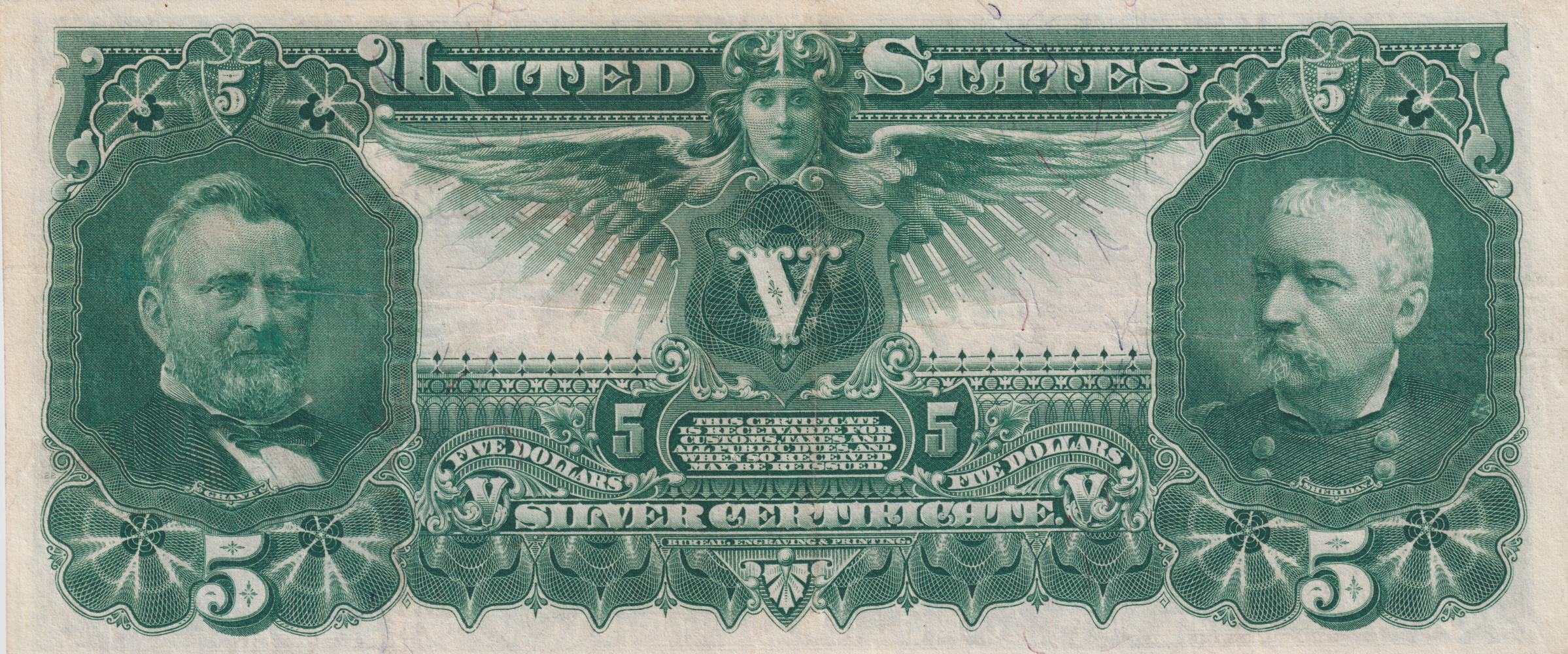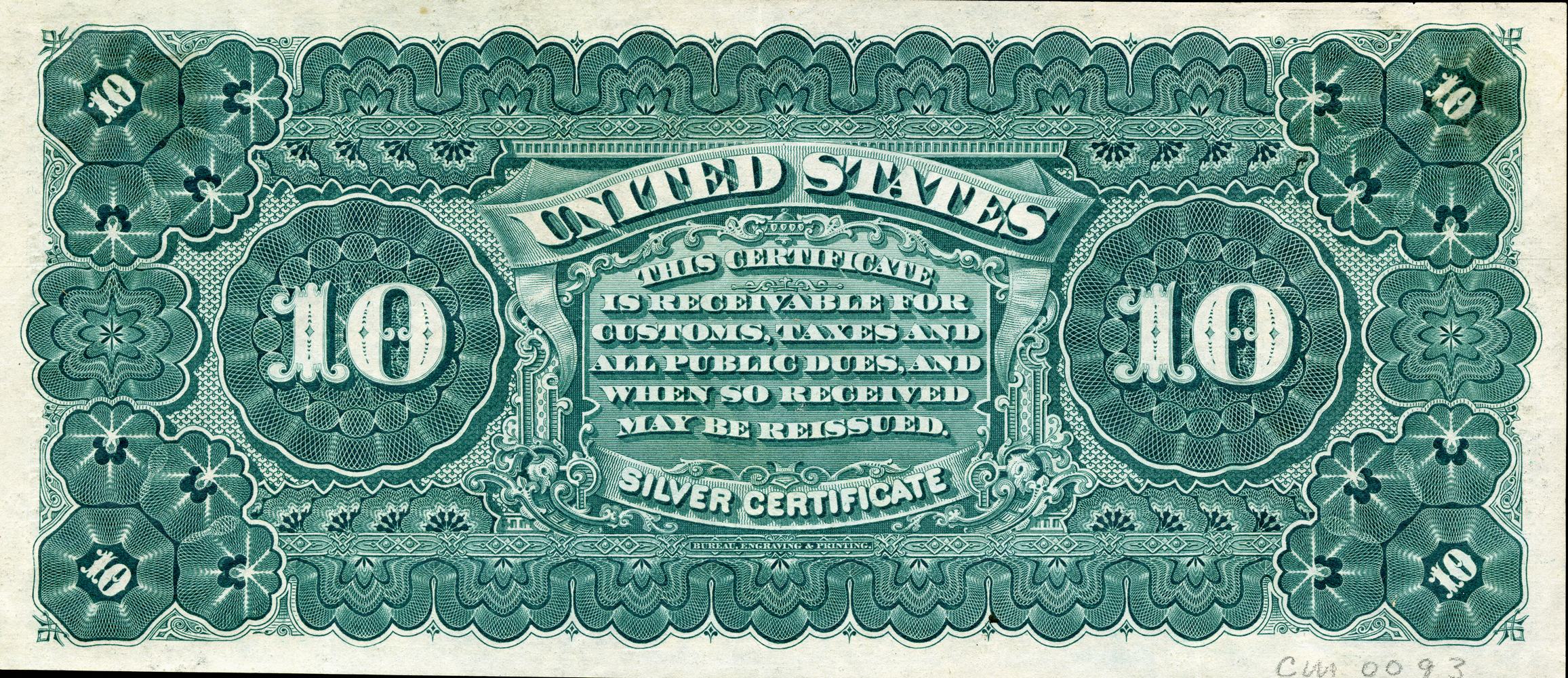 The original plan was to eventually have this type of artistic and educational design used on all denominations of silver certificates from the one dollar to the one thousand dollar note. The $1, $2 and $5 denominations were printed and released.The plates for a $10 note were engraved but notes were never issued as the Act of Congress of August 4, 1886 did not authorized them.