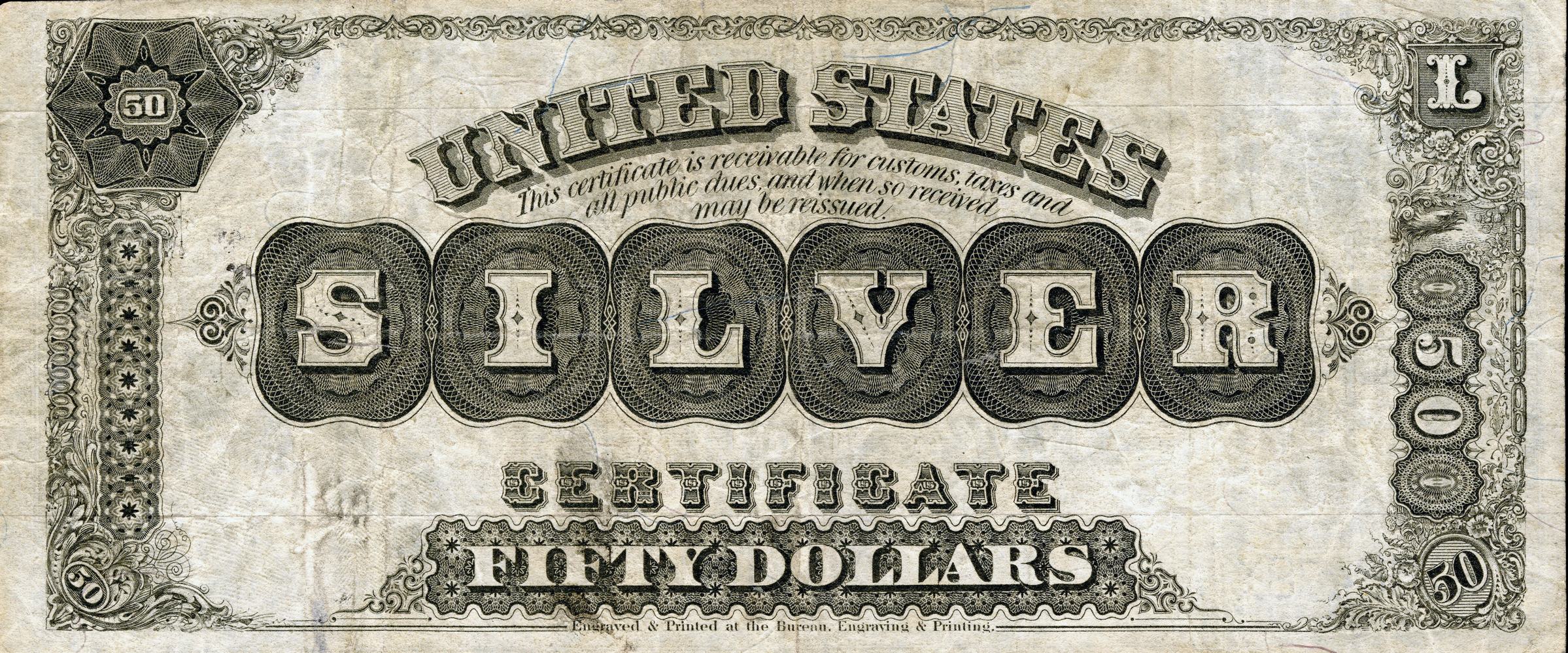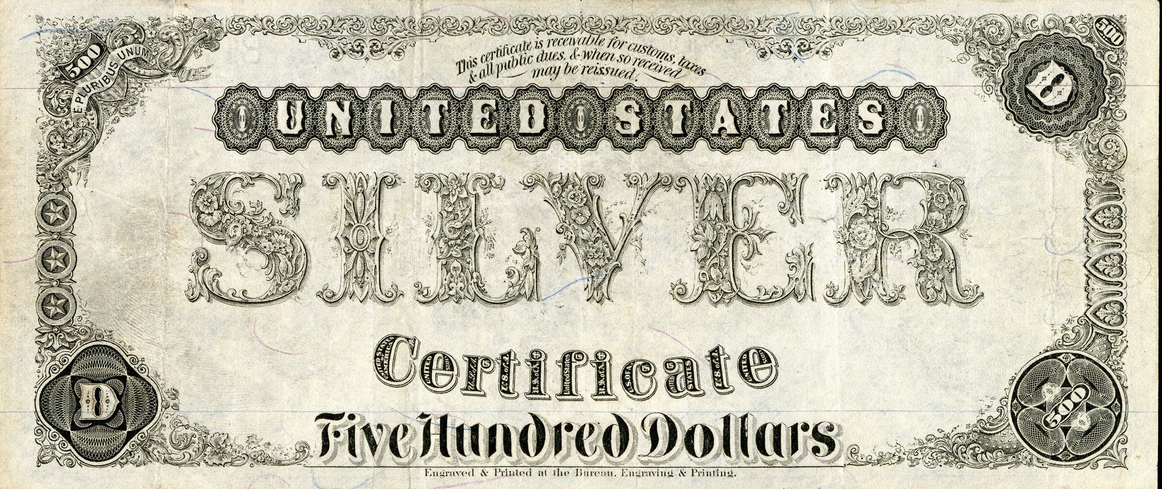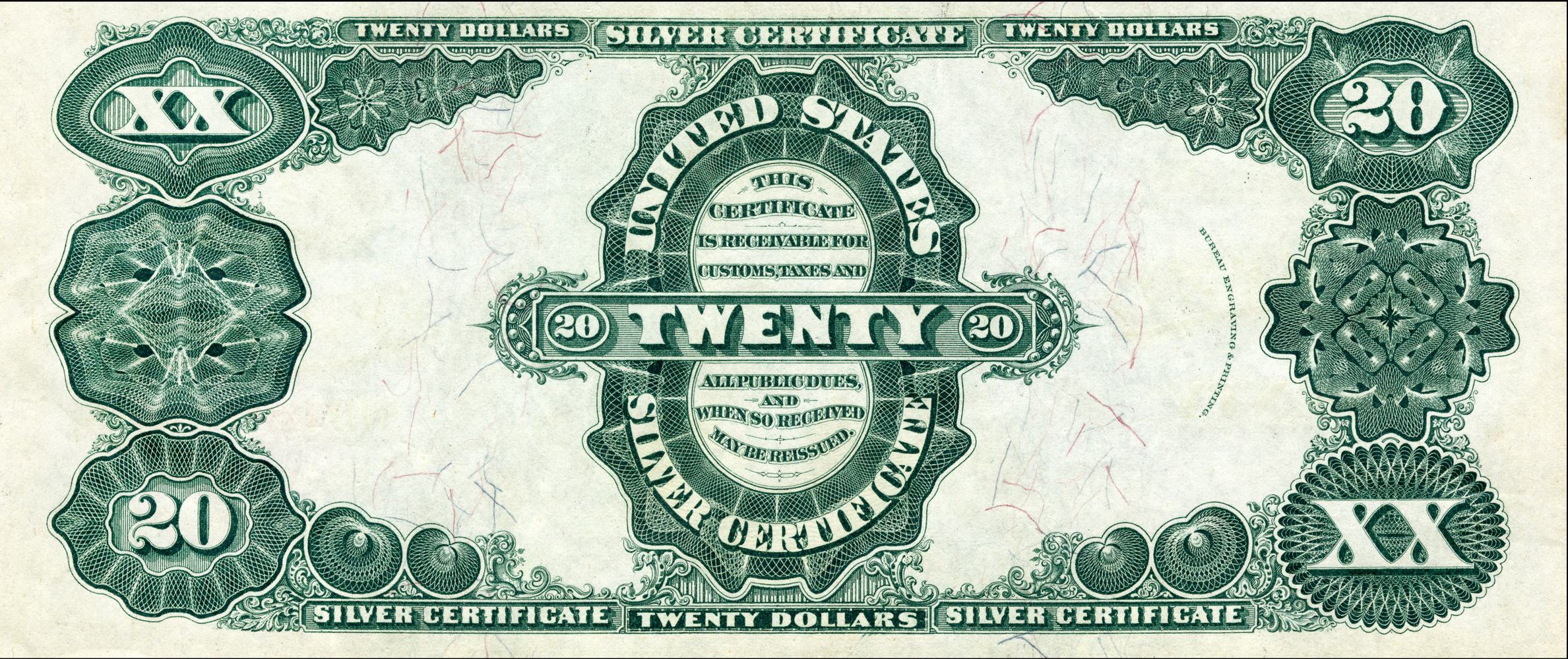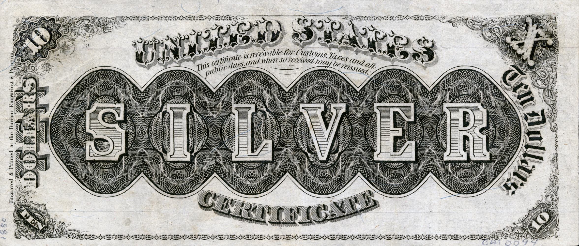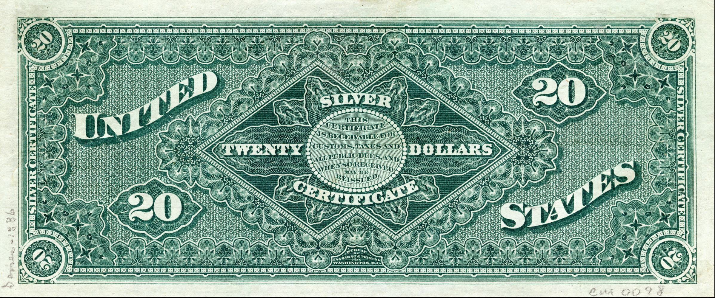 The original plan was to eventually have this type of artistic and educational design used on all denominations of silver certificates from the one dollar to the one thousand dollar note. The $1, $2 and $5 denominations were printed and released.The plates for a $10 note were engraved but notes were never issued as the Act of Congress of August 4, 1886 did not authorized them.