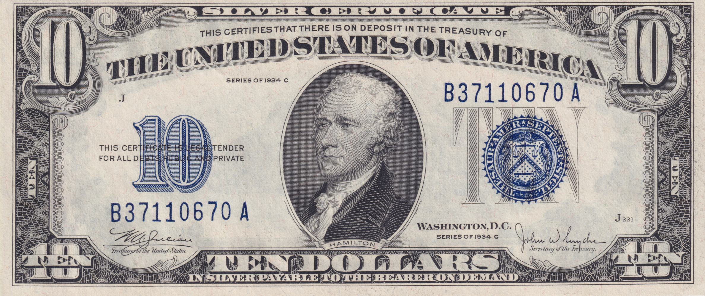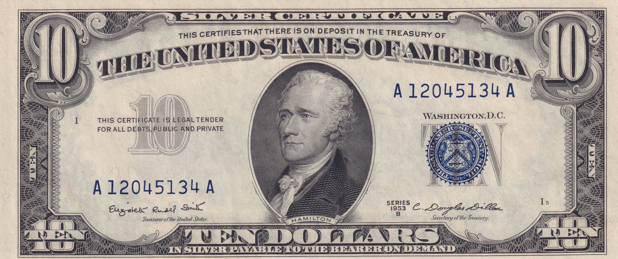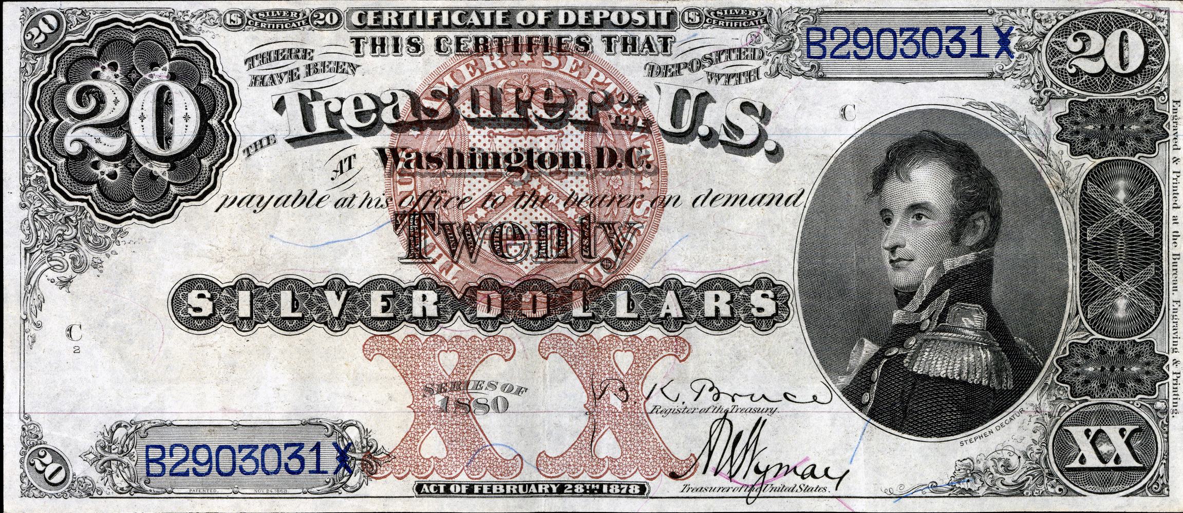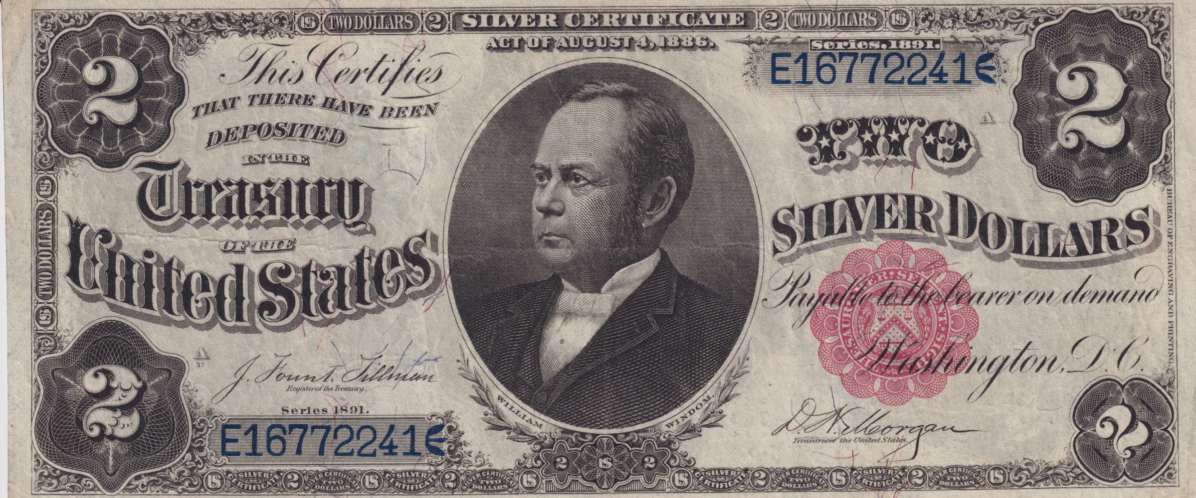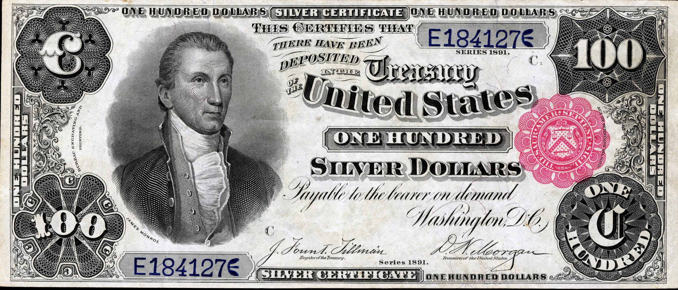 The original plan was to eventually have this type of artistic and educational design used on all denominations of silver certificates from the one dollar to the one thousand dollar note. The $1, $2 and $5 denominations were printed and released.The plates for a $10 note were engraved but notes were never issued as the Act of Congress of August 4, 1886 did not authorized them.