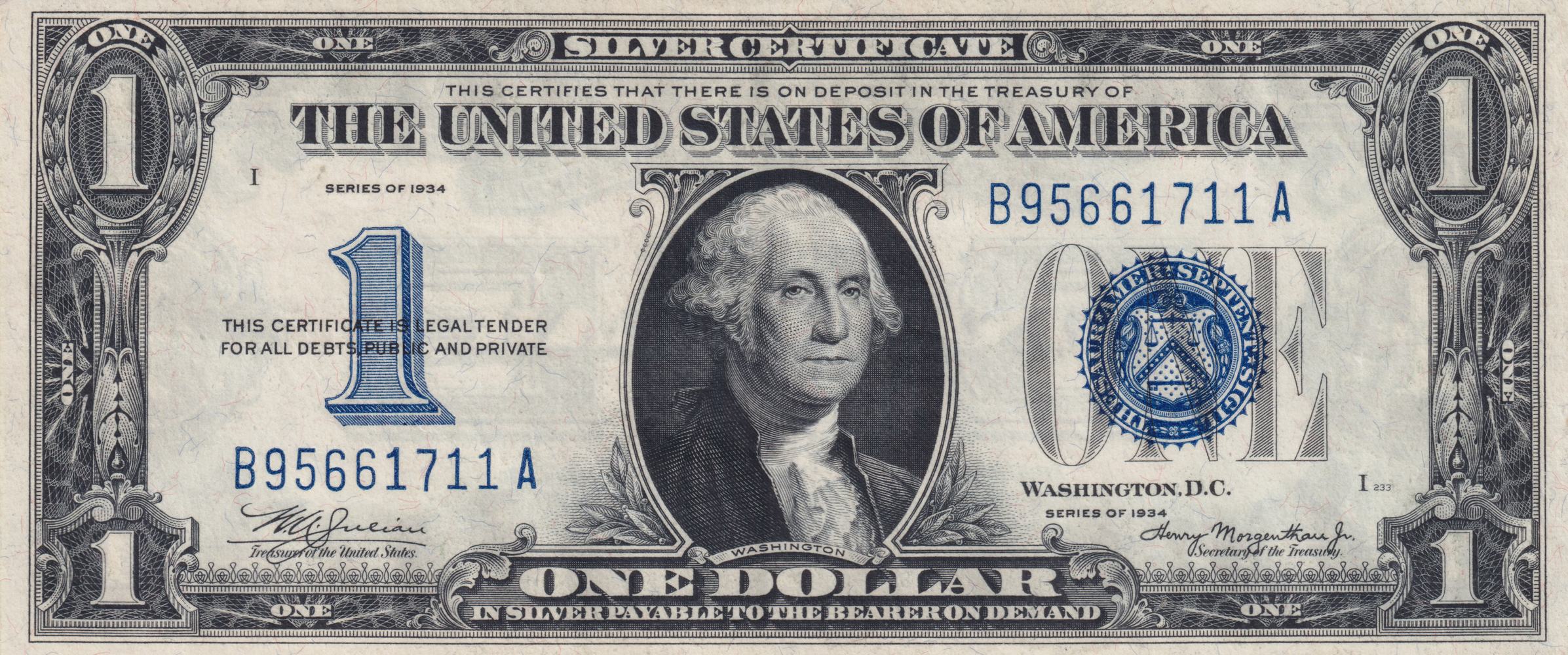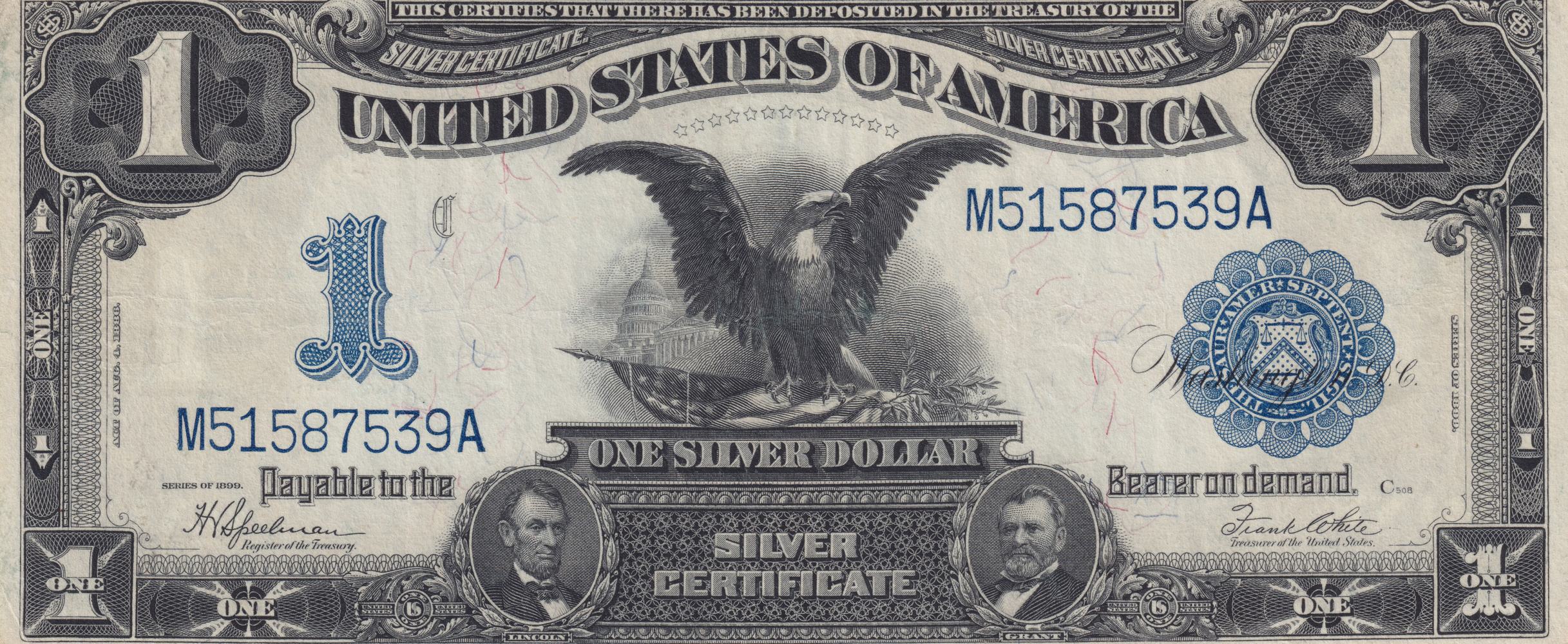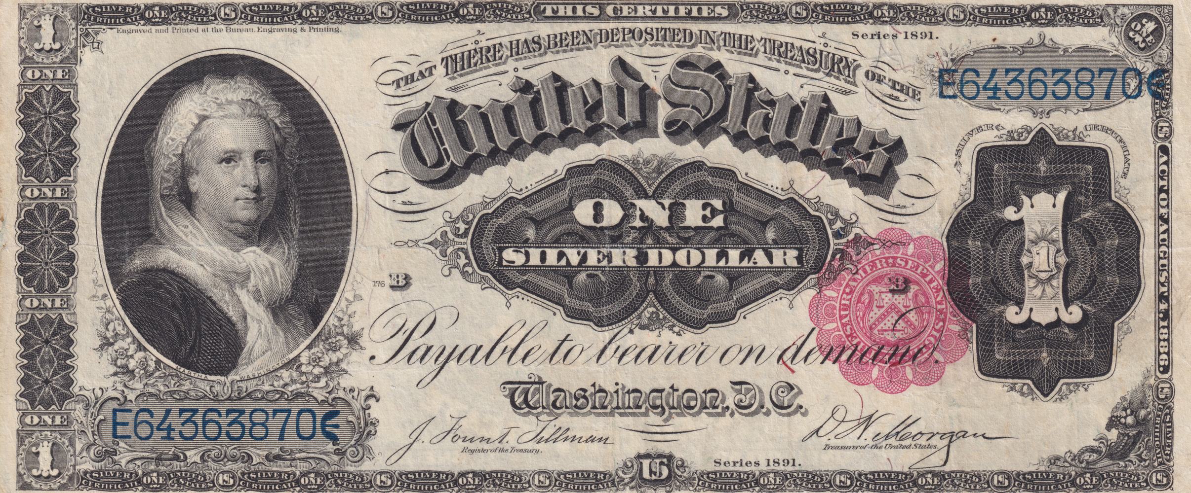 The first $1 Silver Certificate ever issued, and a must-have for every collection! A portrait of Martha Washington, the wife of George Washington, is on the face. The back was simplified from the 1886 version to prevent photographically produced counterfeits.